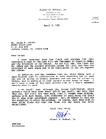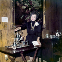 He was on a trip back to Washington in 1949 or 1950 while June was at Sweetbriar, and it was arranged that she would go to Washington and meet him there. When she got off the train he met her and took her to the home of Wally Simpson's aunt, Aunt Bessie. Wally Simpson's aunt held a court almost every day, and Glenn was sought after as an entertaining and knowledgeable person who was very charming and who could play bridge very well. In any event, June was very impressed at being at one of the very great social places in Washington at the time. Of course, at the time Wally Simpson was married to the Duke of Windsor, but she was not there. Glenn Abbey in his Will left all of his property in Mexico to June, but he left a handwritten list with Albert McNeel giving certain things to certain people, including a set of silver sent to Mr. Wilbur Larson and another set to Robert Anderson, and a lot of silver trays.