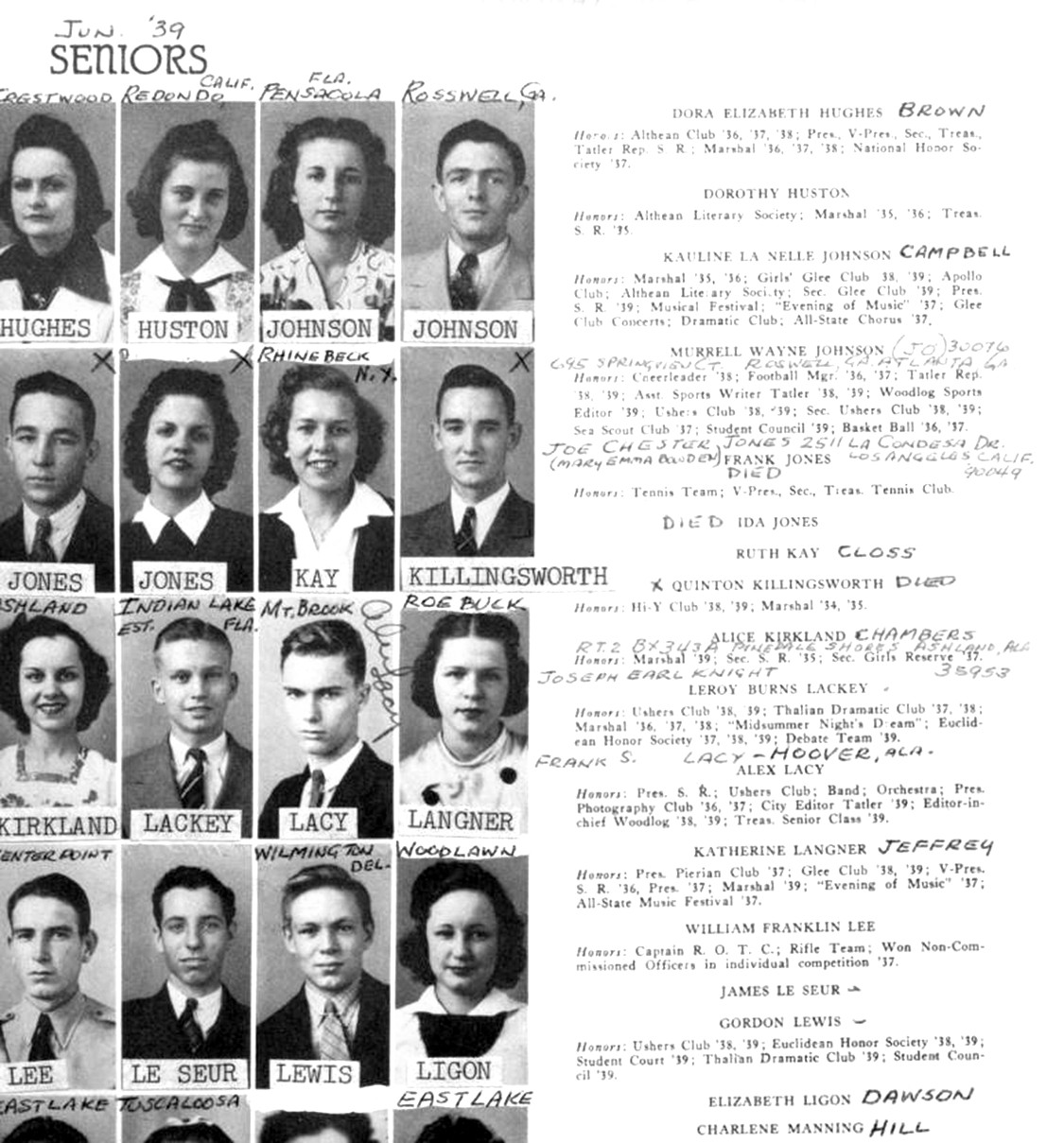 Gordon Hamilton Lewis was a member of the 1939 Class of Woodlawn High School, Birmingham, Jefferson Co., GA.