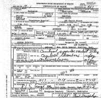 Gustaf Erec "Gust" Anderson died September 2, 1958, at Providence Hospital, Everett, Snohomish Co., WA, at age 86. Buried in Evergreen Cemetery, Everett, Snohomish Co., WA.