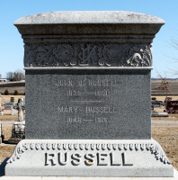 John J. Russell and Mary C. (McDuffie ) Russell are buried in Jefferson Cemetery, Jefferson, Grant Twp., Greene Co., IA. Thanks to Find-A-Grave for making these images available.