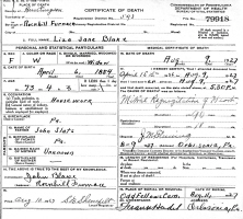 The 1920 U. S. Census taken on January 14, 1920 shows Eliza Blake (age 56) born in Pennsylvania to Pennsylvania-born parents who cannot write is a widow owning her own home free of a mortgage and living on Iron Street, Rockhill Borough, Huntingdon Co., PA. Living with her is her unmarried son: John Blake (age 38) born in Pennsylvania to Pennsylvania-born parents, who is a Dinkey Engineer on a Steam Railroad.