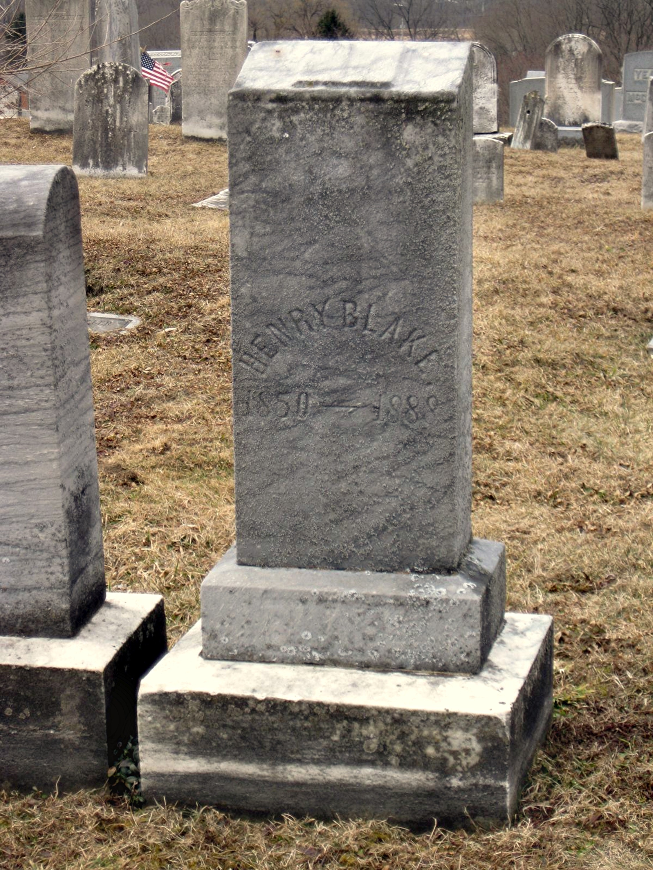 Henry H. Blake died 1888 in Rockhill Furnace, Huntingdon Co., PA, at about age 41. Buried in Orbisonia Cemetery, Orbisonia, Huntingdon Co., PA.