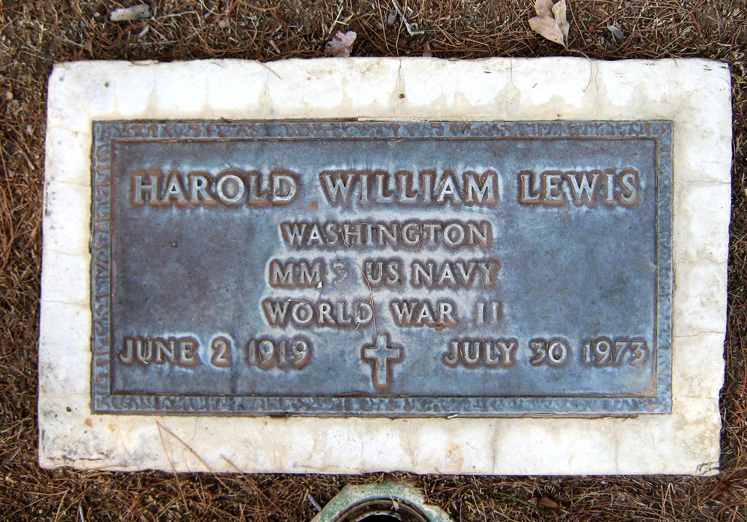 Harold William Lewis is buried in Desert Memorial Park, Ridgecrest, Kern Co., CA. Thanks to Find-A-Grave for making this image available.