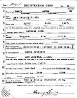 The WWI Draft Registration Report taken on June 5, 1917, shows Henry Lewis (age 30) born April 26, 1887, in Waupaca, WI, is an Electrician and is a partner in the business of Lewis Brothers, New Leipzig, ND, and is living in New Leipzig, Morton Co., ND. He has a wife and child.