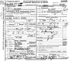 Alice Catherine "Kate" (Thompson) Currey died November 7, 1945, at home, 56 Vandeventer Place, City of St. Louis, MO, at age 93.