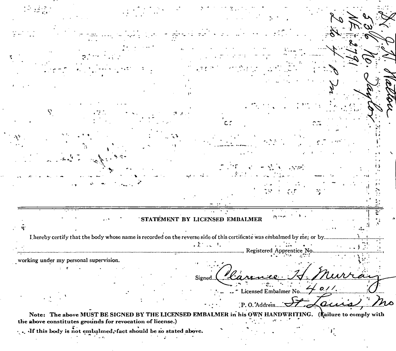it read in part: "His funeral services were conducted by the Rev. Mr. Watkins,