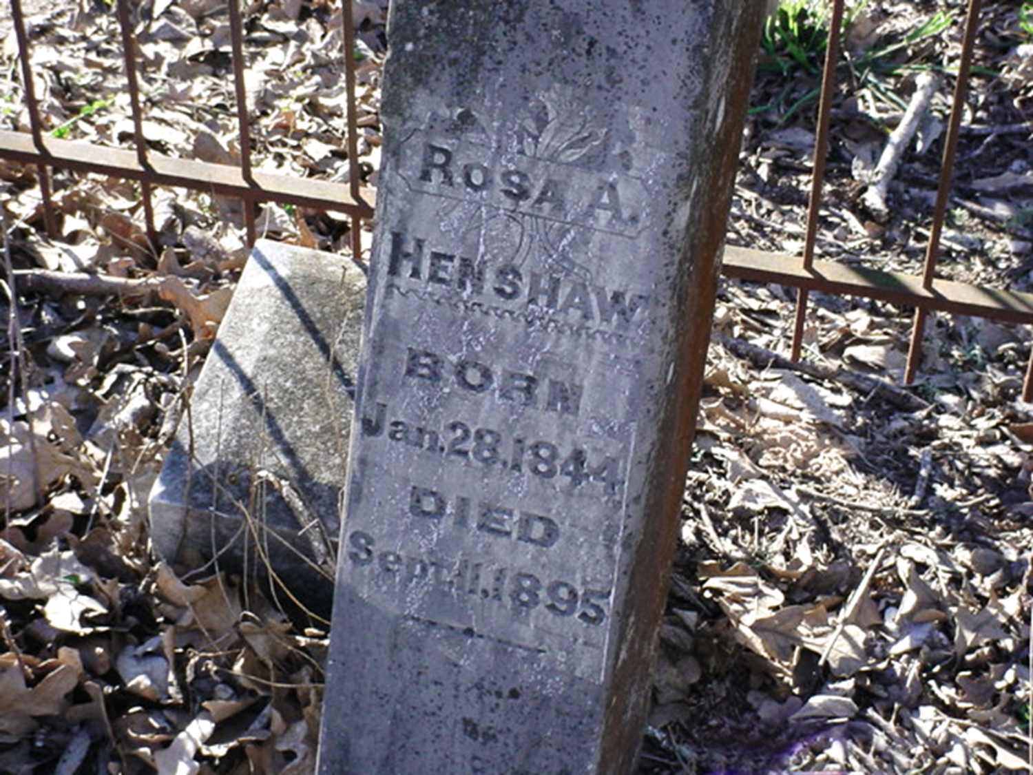 - Rosanah Amanda "Rosa" Thompson: Born January 28, 1844, in Texas; Died September 11, 1895, in Texas (age 51). Buried in Saints Oakwood Cemetery, San Antonio, Bexar Co., TX. Married March 31, 1864, in Atascosa Co., TX, to John A. Henshaw: Born February 29, 1824, in Tennessee; Died March 25, 1919, at home, 1005 Buena Vista, San Antonio, Bexar Co., TX (age 94). Buried in Oak Island, Bexar Co., TX.
