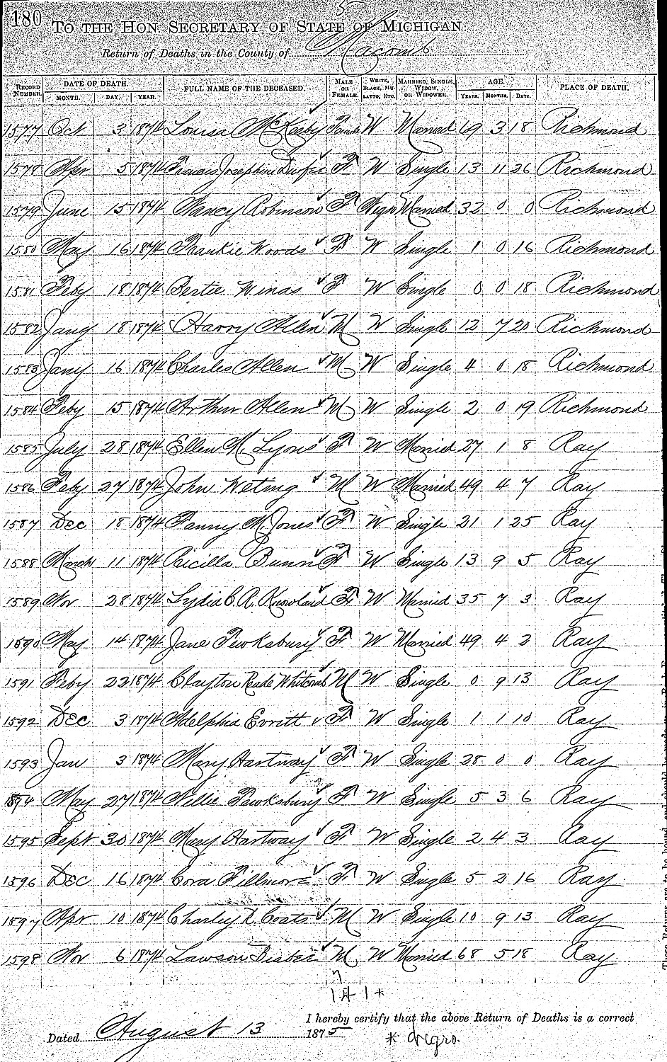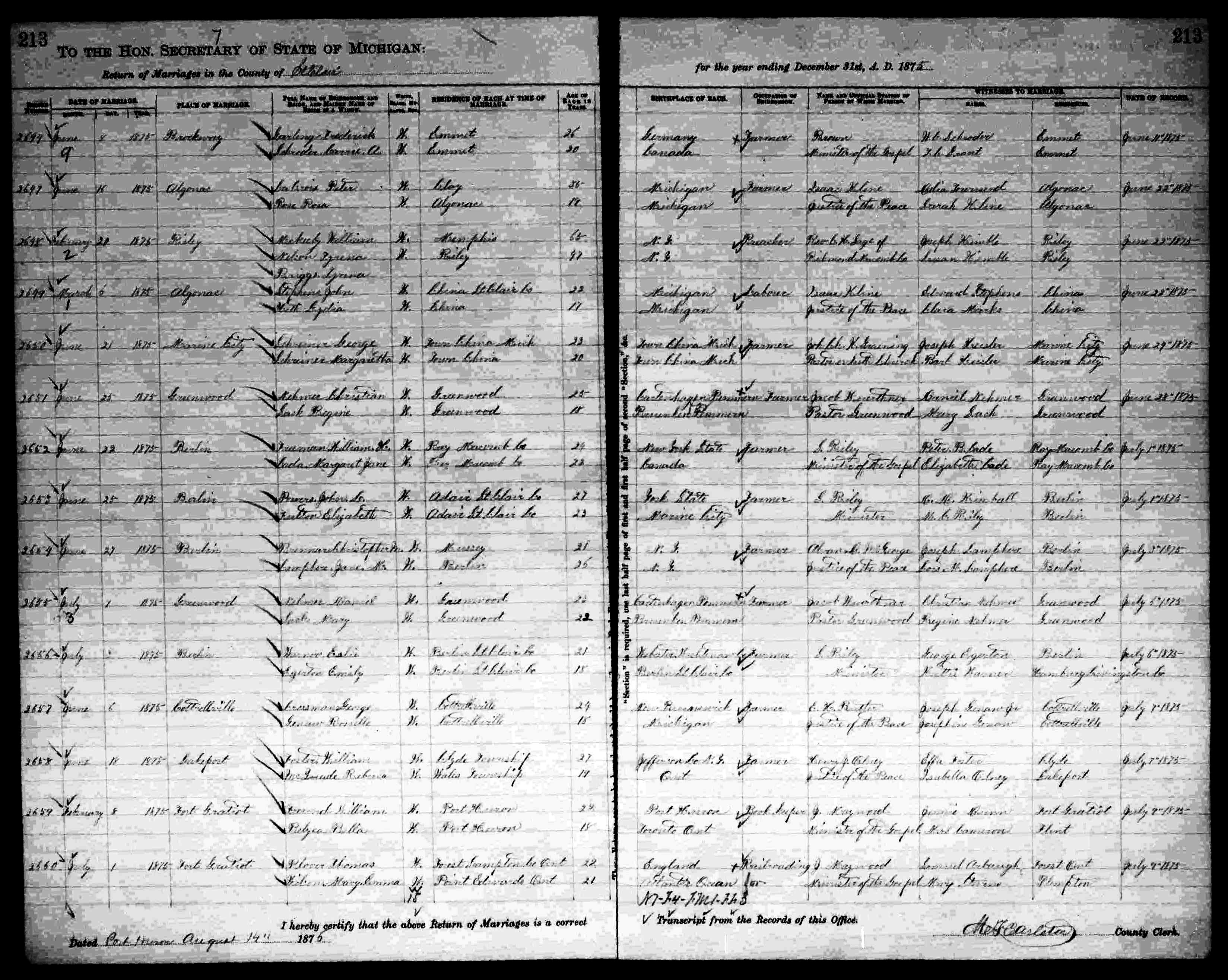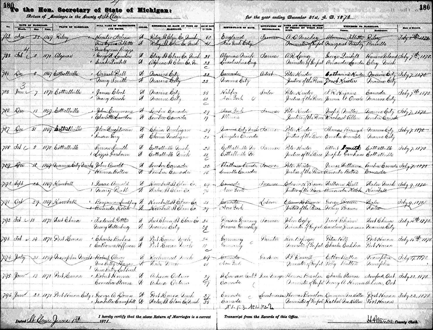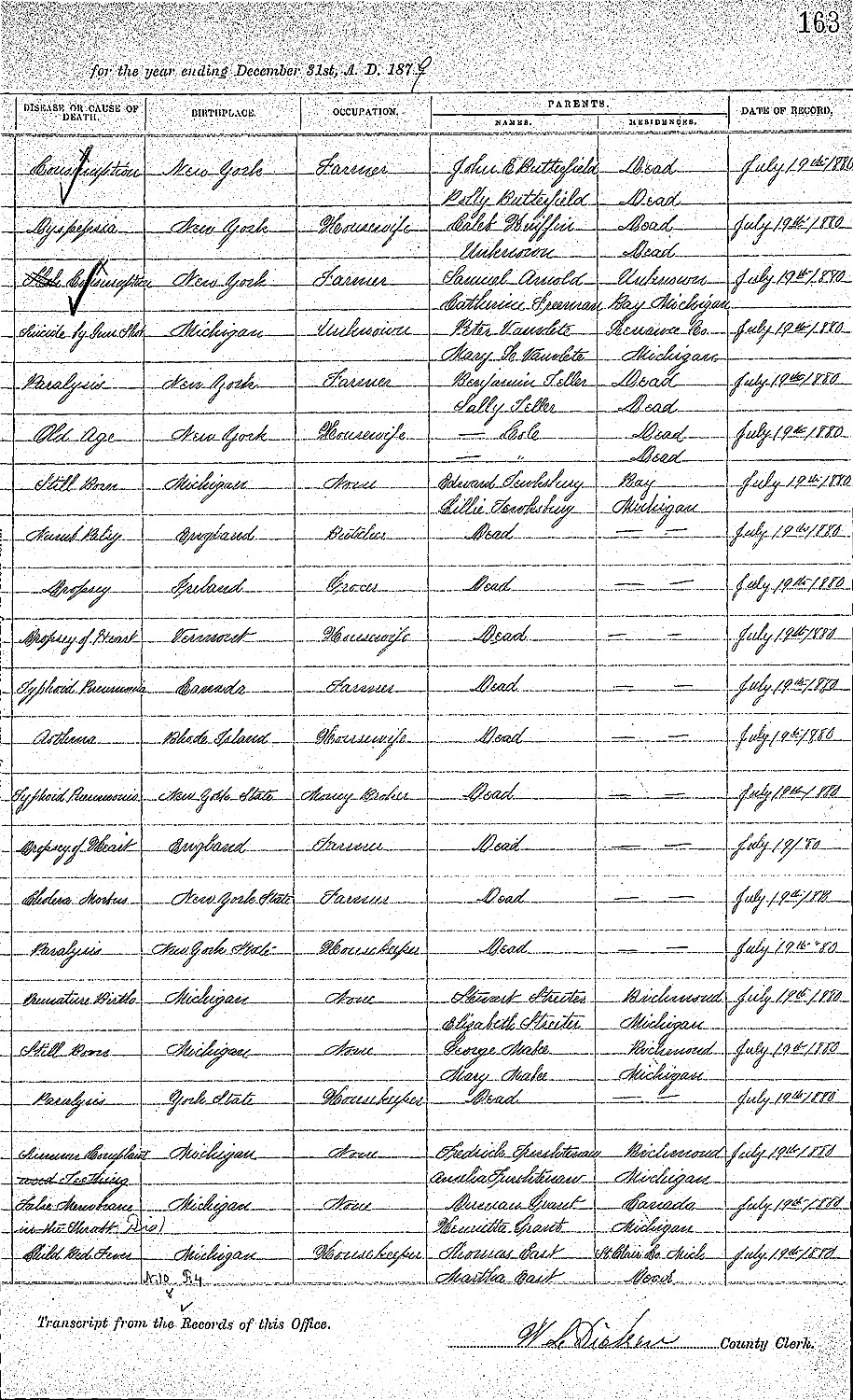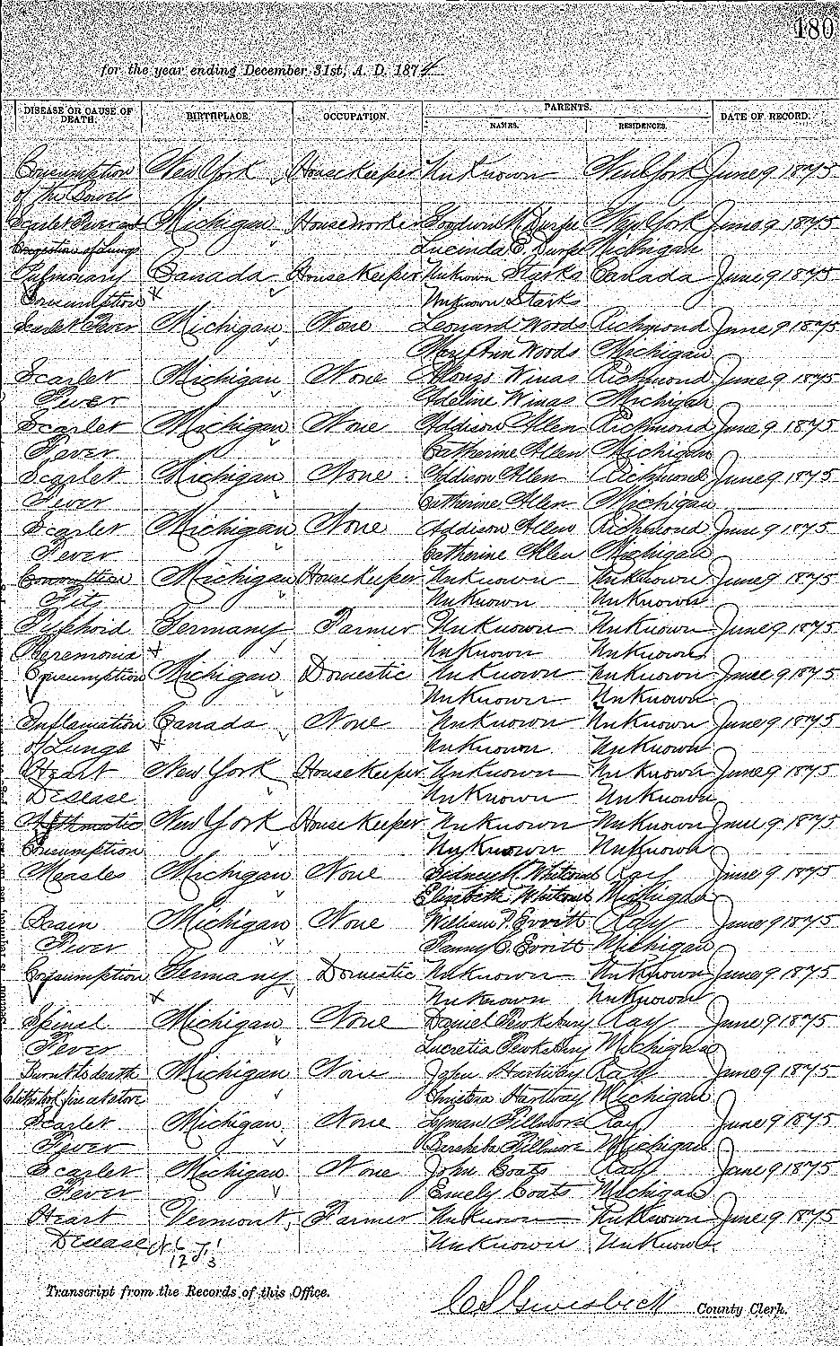 Birth: 1835 Riley, Michigan