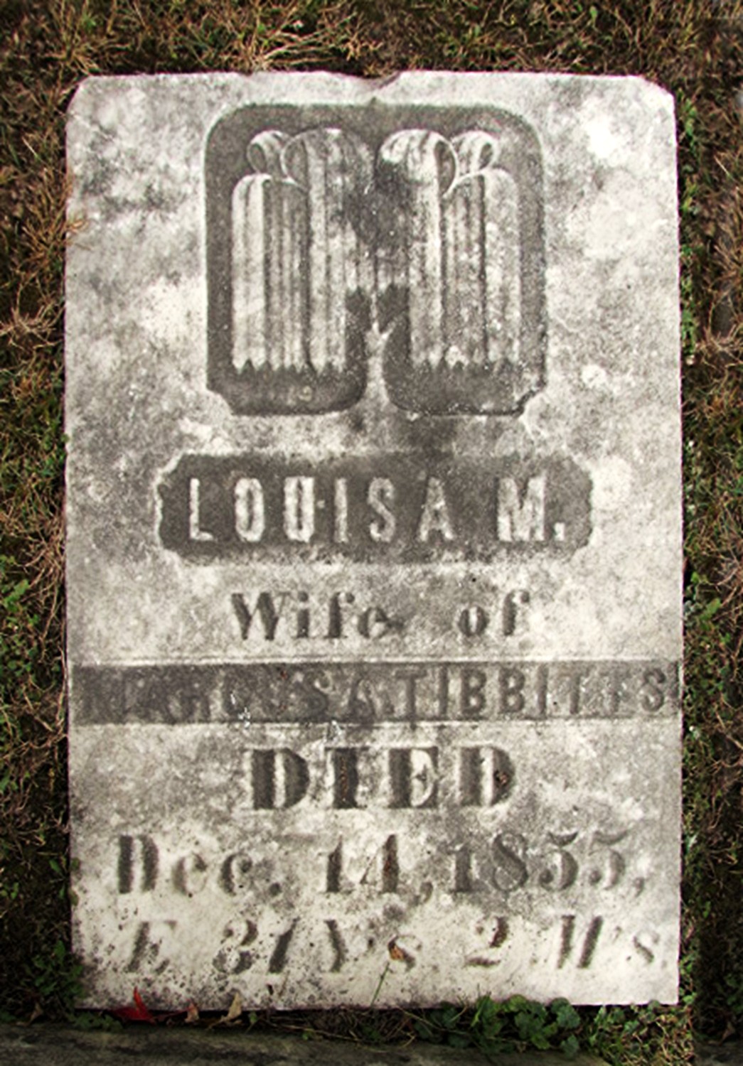 Louisa M. (Curtis) Tibbitts is buried in Rose Hill Cemetery, Armada, Macomb Co., MI. Thanks to Find-A-Grave for making this image available.