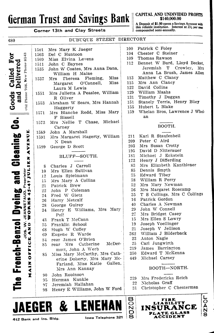 Dubuque and Dubuque County directory, 1909, Cooley, Boardman. Telegraph-Herald Co. (Dubuque, Iowa), 7th ed., Dubuque, Iowa