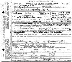 Lucinda Christina Paulson was born September 8, 1909, in Cumberland, Cumberland Co., VA.