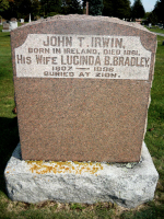 John Taaffe Irwin is buried in Welcome United Church Cemetery, Welcome, Northumberland Co., Ontario, Canada. Thanks to Find-A-Grave for making this image available.