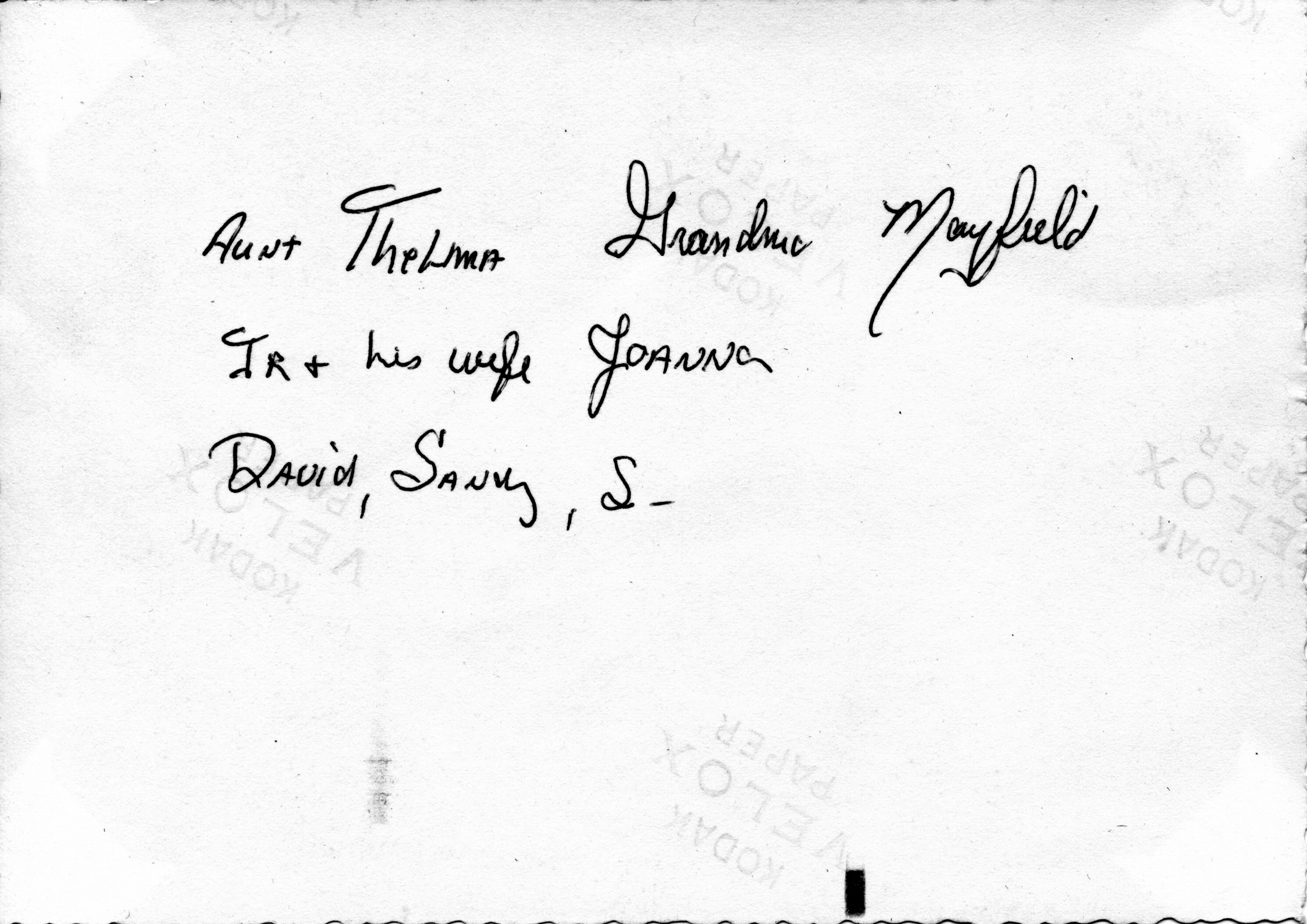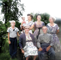 Back Row, Left to Right: Thelma Blanche (Mayfield) Thompson; Iva May "Ivy" (Abbey) Mayfield; Cloud Hughes "Jupe" Thompson Jr.; and Joanne M. (Florang) Thompson.