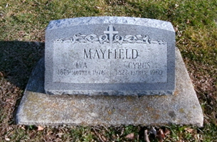 Cyrus Lawrence Mayfield and Iva May "Ivy" (Abbey) Mayfield are buried in Eastside Cemetery, Dodgeville, Iowa Co., WI. Thanks to Find-A-Grave for making this image available.