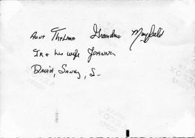 "If you would ask my mother-in-law where she was born and what physicians attended, she would say, 'I was born in a sod shanty and no doctor was there.' "Mother, Mrs. Cyrus Mayfield, of Dodgeville, related the following story to me: " 'My parents, Mr. and Mrs. William Abbey, and my oldest brother, Irvin, lived in Richland county. Early in 1878, they decided to go west to homestead some land. In their covered wagon, drawn by horses, they had some clothing, bedding, and cooking utensils, including a long-handled skillet, water pail, tin plates and cups, some steel knives and forks, and a coffee pot. " 'Mother and Dad worked their way west to earn food for themselves and their horses and a place to sleep. " 'By fall, they had arrived in Norton county, Kansas. Here they homesteaded 160 acres. There was not time nor material to build a log or lumber building as they had back in Richland county. Dad put up a sod shanty. He put up a framework and used sods about 1 foot square. The one room building was about 16 feet square. " 'I was born in this sod shanty, Mar. 26, 1879. Mother named me Iva Mae. " 'She used to laugh when she told of my first christening. Late in April of 1879 there was a long rainy season and, of course, a sod shanty would let water seep in. Mother heard a fussing near the cradle and found me floundering in a mud puddle on the floor. I had fallen out of bed.' On Mar. 29, 1956, the Lord willing, Mr. and Mrs. Cyrus Mayfield will celebrate their 57th wedding anniversary. Their six children are Melva Egalhoff, Dodgeville; Mrs. C. H. Thompson, Ft. Madison, Ia.; Mrs. Art Held, Chicago; Mrs. Herman Crume, 17 N. Brearly st., Madison; Marvin, of International Falls, Minn., and Leslie, of Wilton."