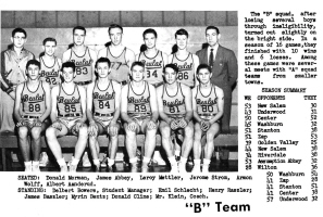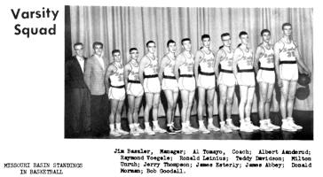 James Gerald "Jim" Abbey participating in the sports programs in 1956, as shown in "The Miner" yearbook , Beulah High School, Beulah, Mercer Co., 1956.