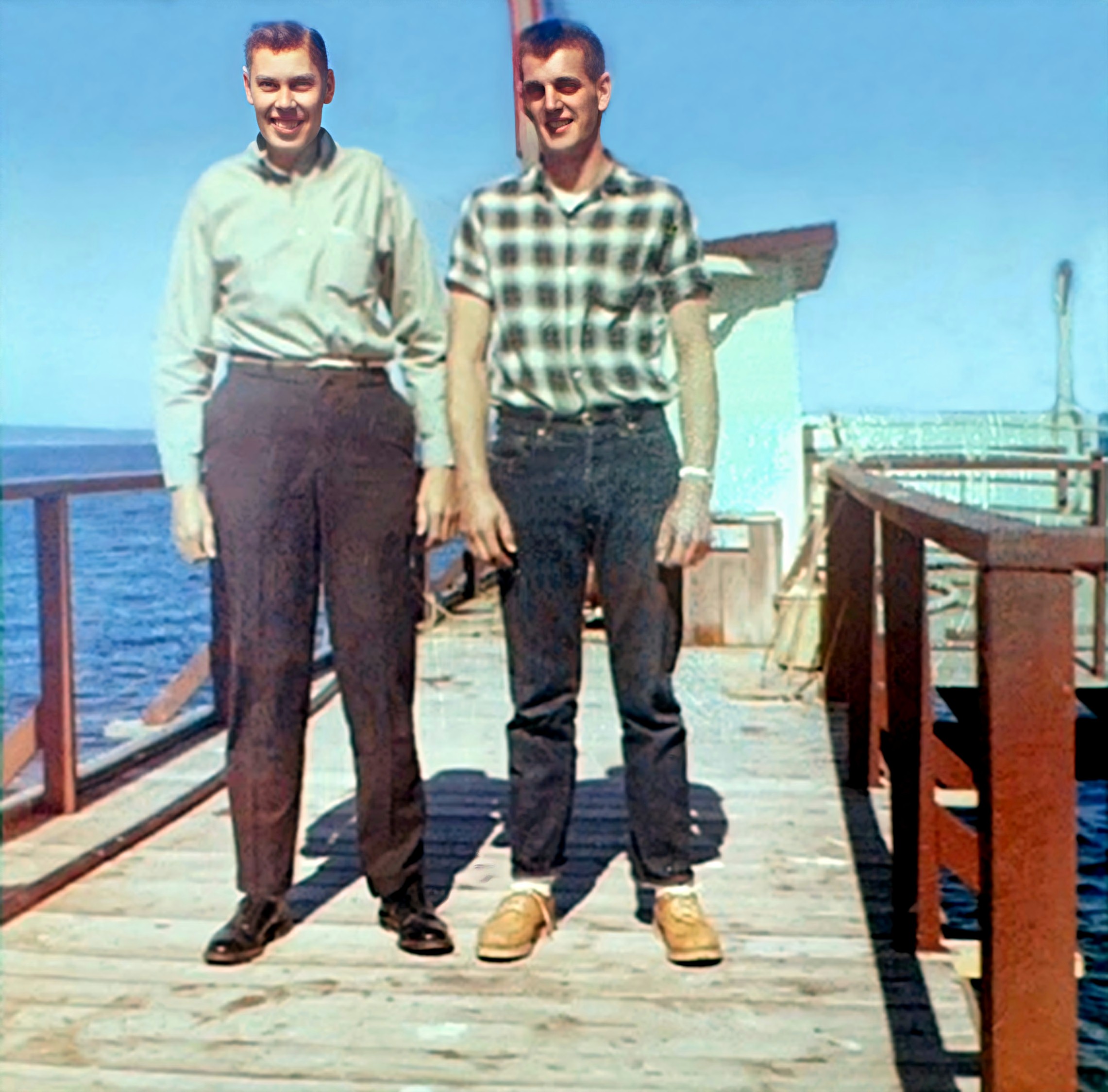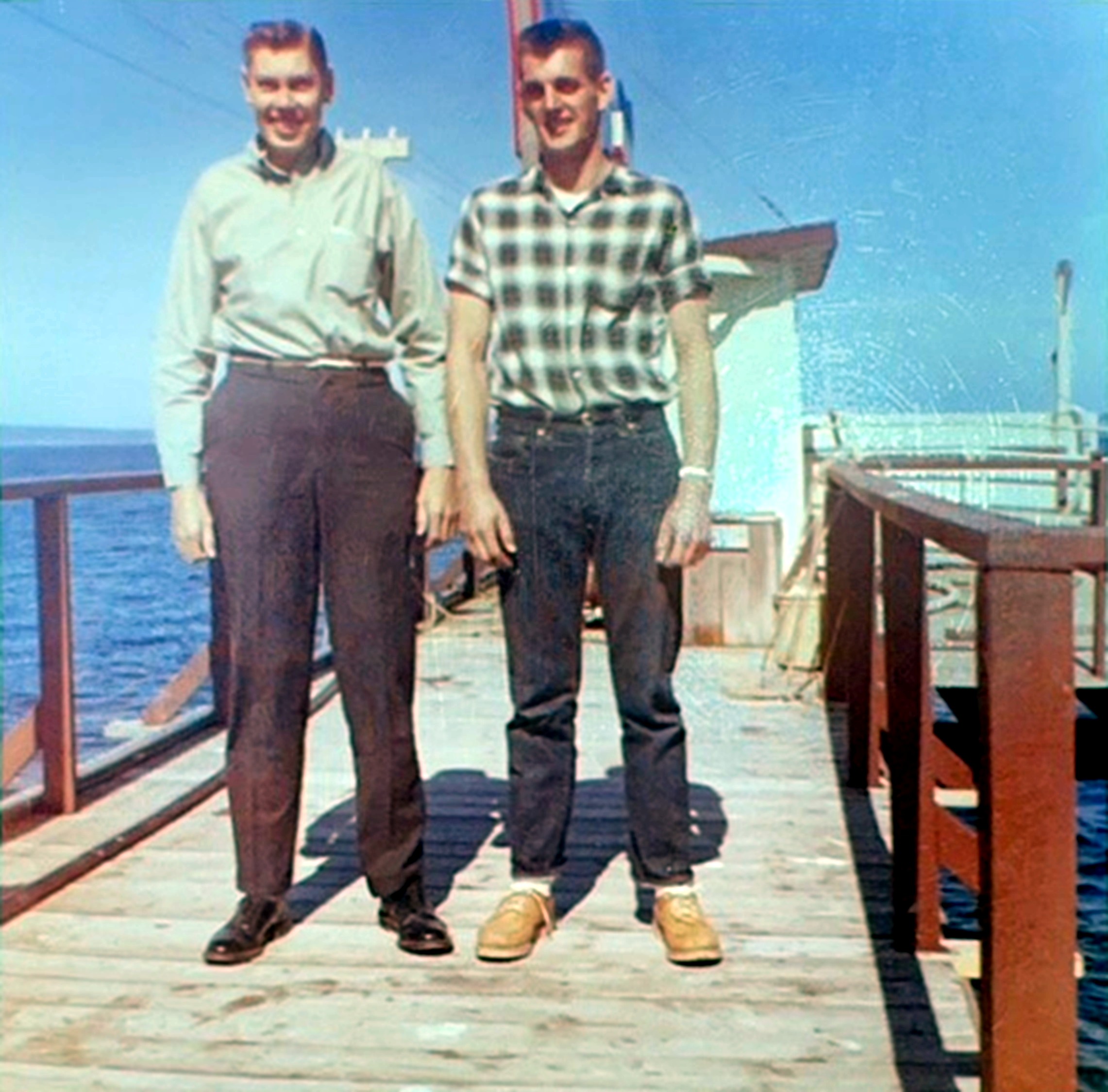 James F. "Jim" Morman , son of Henry Bernard "Hank" Morman and Philomena Bertha "Minnie" (Tavis ) Morman, and James Gerald "Jim" Abbey, Key West, Monroe Co., FL, May, 1962. Original photo, left, courtesy of Julie Lyn (Abbey) Hakalmazian , who found the picture among the effects of her father, J ames Gerald "Jim" Abbey.