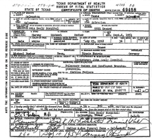 January 7, 1943, in Galveston, Galveston Co., TX; Died August 24, 2003, in UTMB
