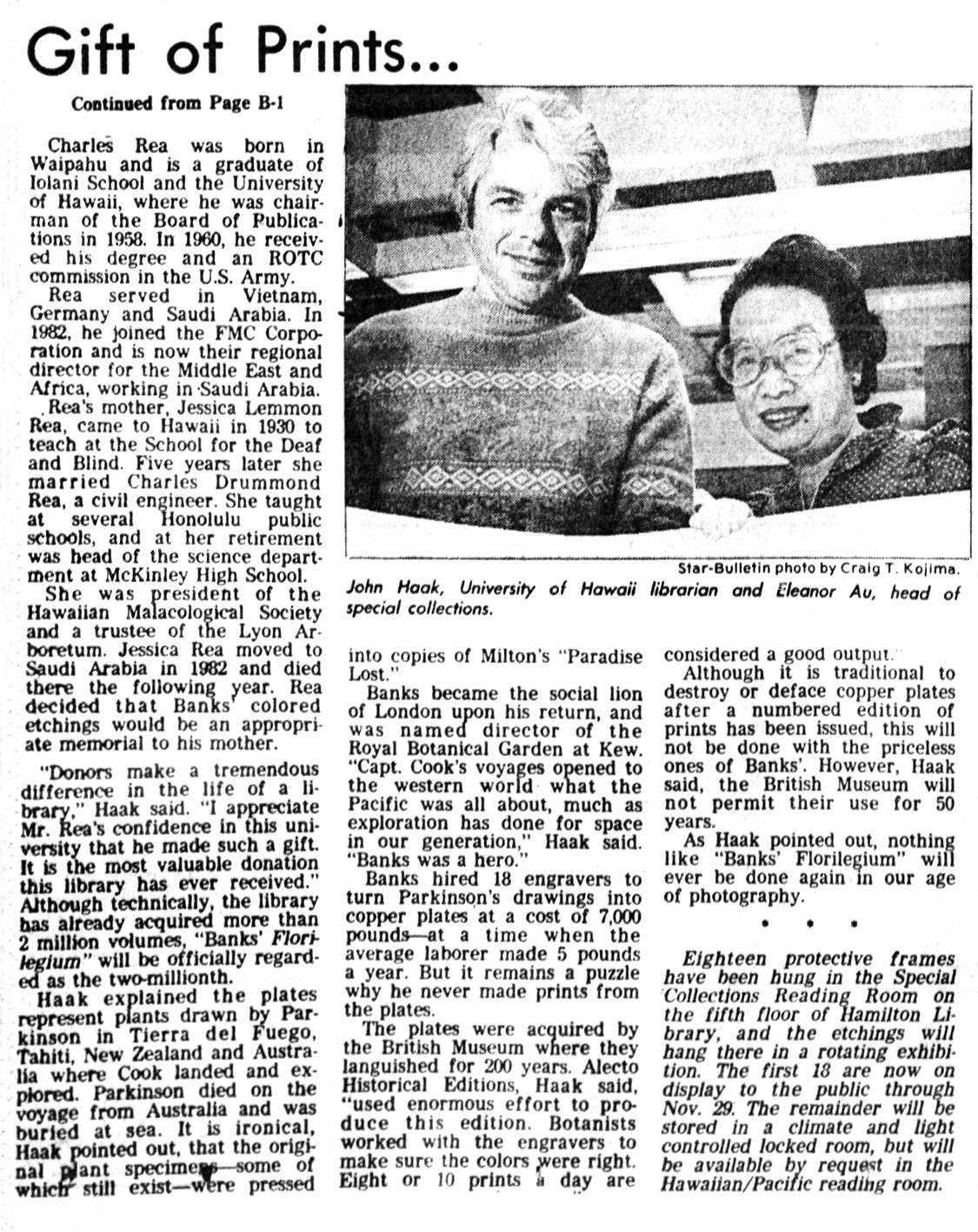 - Charles Pedric Rea: Born April 29, 1937, in Waipahu, Territory of Hawaii ; Died Tuesday, March 19, 2013, in Portland, Cumberland Co., ME (age 75). He is a graduate of Iolani School and UH, where he served as chair of the Board of Publications in 1958.