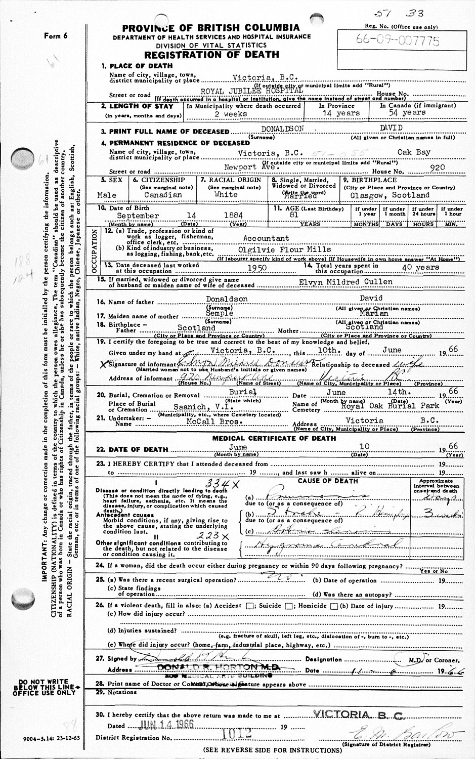 born December 1892 in Canada.