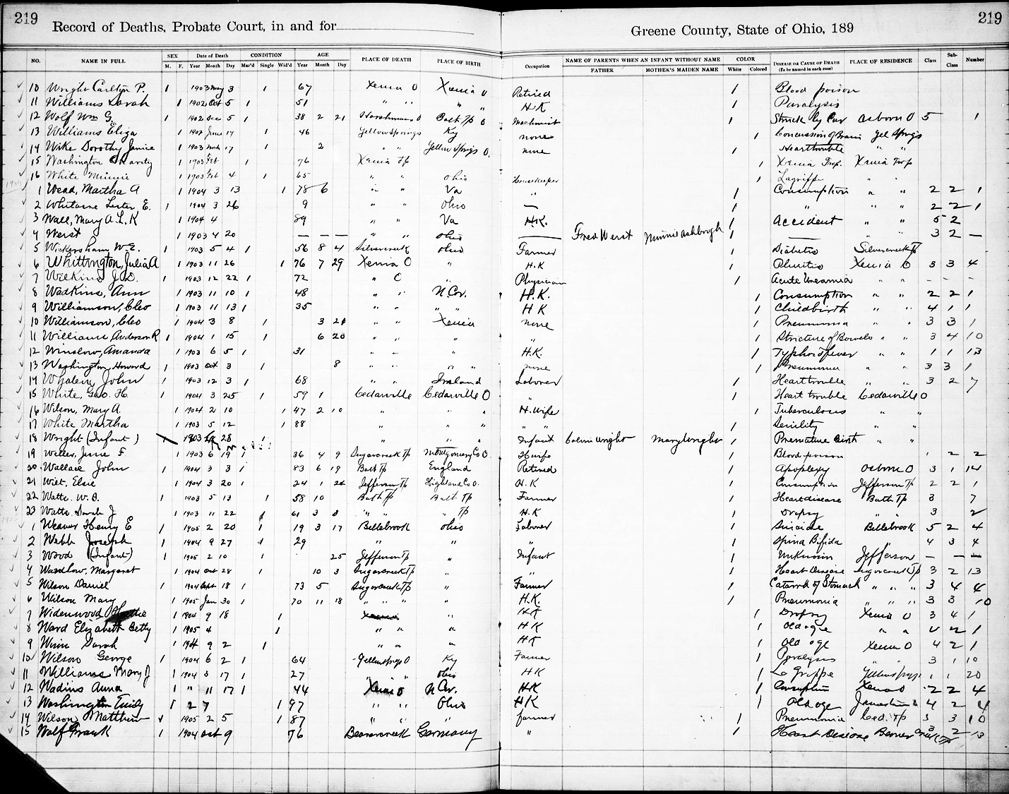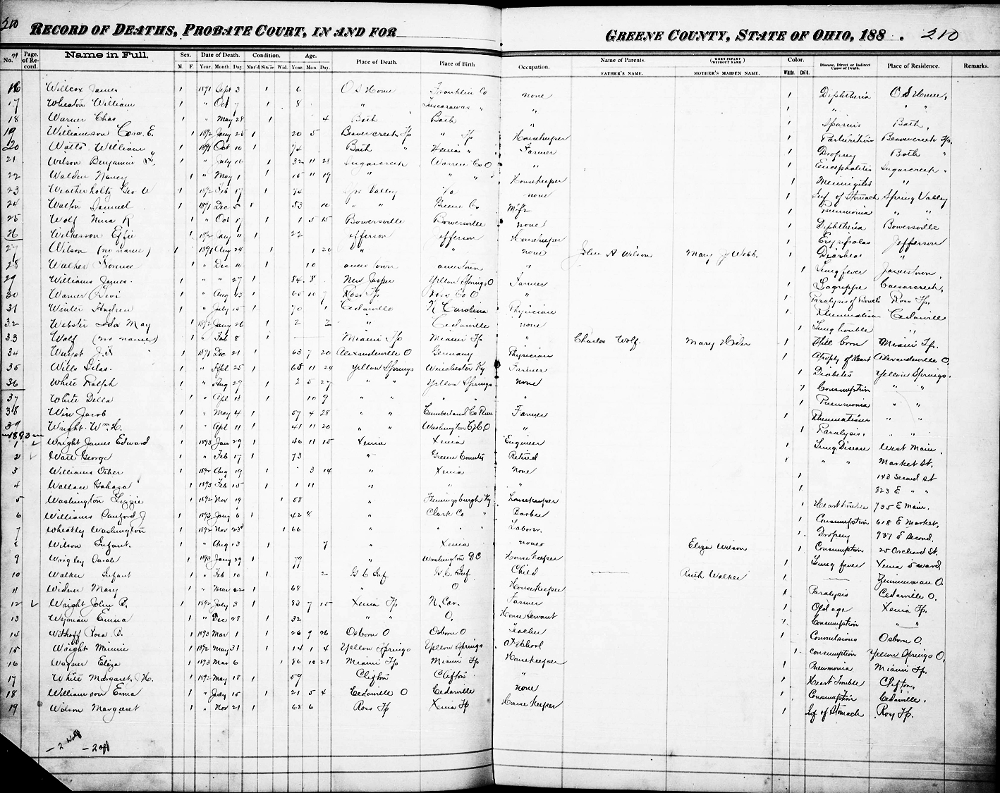 Matthew Wilson died February 5, 1905, in Cedarville, Greene Co., OH, at age 87.