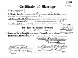 Thomas D. McLaughlin and Harriett Eveline "Hattie" (Hayner ) (Ratty) Hanke were married October 5, 1931, in Vancouver, Clark Co., WA.