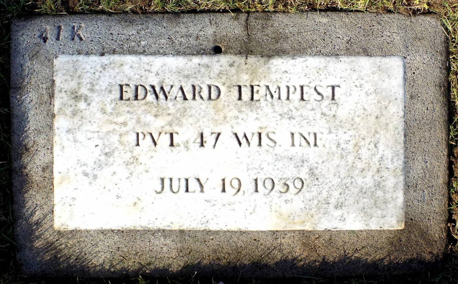 Edward C. Tempest , residing at Ripon, WI, enlisted on January 16, 1865, as a Private in Company I, 47th Infantry Regiment, Wisconsin Volunteers. He was mustered out on September 4, 1865, at Nashville, TN.