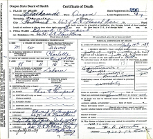 Ralph W. "Buffie" Hanke: Born March 17, 1904, in Multnomah, Multnomah Co., OR; Died February 8, 1988, in Multnomah Co. OR (age 83). Married July 31, 1924, in Portland, Multnomah Co., OR, to Viola C. Dieter: Born May 20, 1903, in Oregon; Died September 24, 1969, in Scappoose, Columbia Co. OR (age 66).