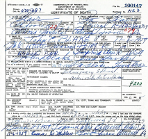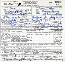 Ralph Peter Kauffmann died July 3, 1962, in Roaring Spring, Blair Co., PA, at age 70. Buried in Greenlawn Cemetery, Roaring Spring, Blair Co., PA.