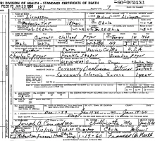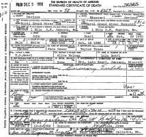 - Helen Maudyne Searl: Born August 4, 1908, in Buchanan Twp., Page Co. IA; Died October 31, 1991, at Saint Mary's Regional Medical Center, Reno, Washoe Co., NV, (age 83). Buried in East Lawn Palms Cemetery, Tucson, Pima Co., AZ. Married (1) to Unknown: Born Unknown; Died Unknown. Divorced June, 1930, in Page Co., IA. Married (2) August 29, 1937, in Jameson, Daviess Co., MO, to Theodore Kenneth Coles Jr.: Born February 19, 1902, in Douglas, Marquette Co., WI; Died November 14, 1996, in Tucson, Pima Co., AZ (age 94). Buried in East Lawn Palms Cemetery, Tucson, Pima Co., AZ.