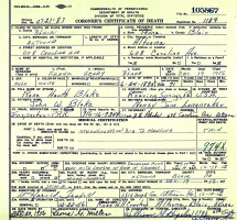 - Franklin Henry "Frank" Blake: Born June 24, 1885, in Roaring Spring, Blair Co., PA ; Died by suicide December 19, 1956, in Altoona, Blair Co., PA (age 71). Buried in Rose Hill Cemetery, Altoona, Blair Co., PA. Married May 29, 1913, in Altoona, Blair Co., PA, to Rose Christina Hauth: Born October 19, 1883, in Altoona, Blair Co., PA; Died April 25, 1961, in Altoona, Blair Co., PA (age 77). Buried in Rose Hill Cemetery, Altoona, Blair Co., PA.