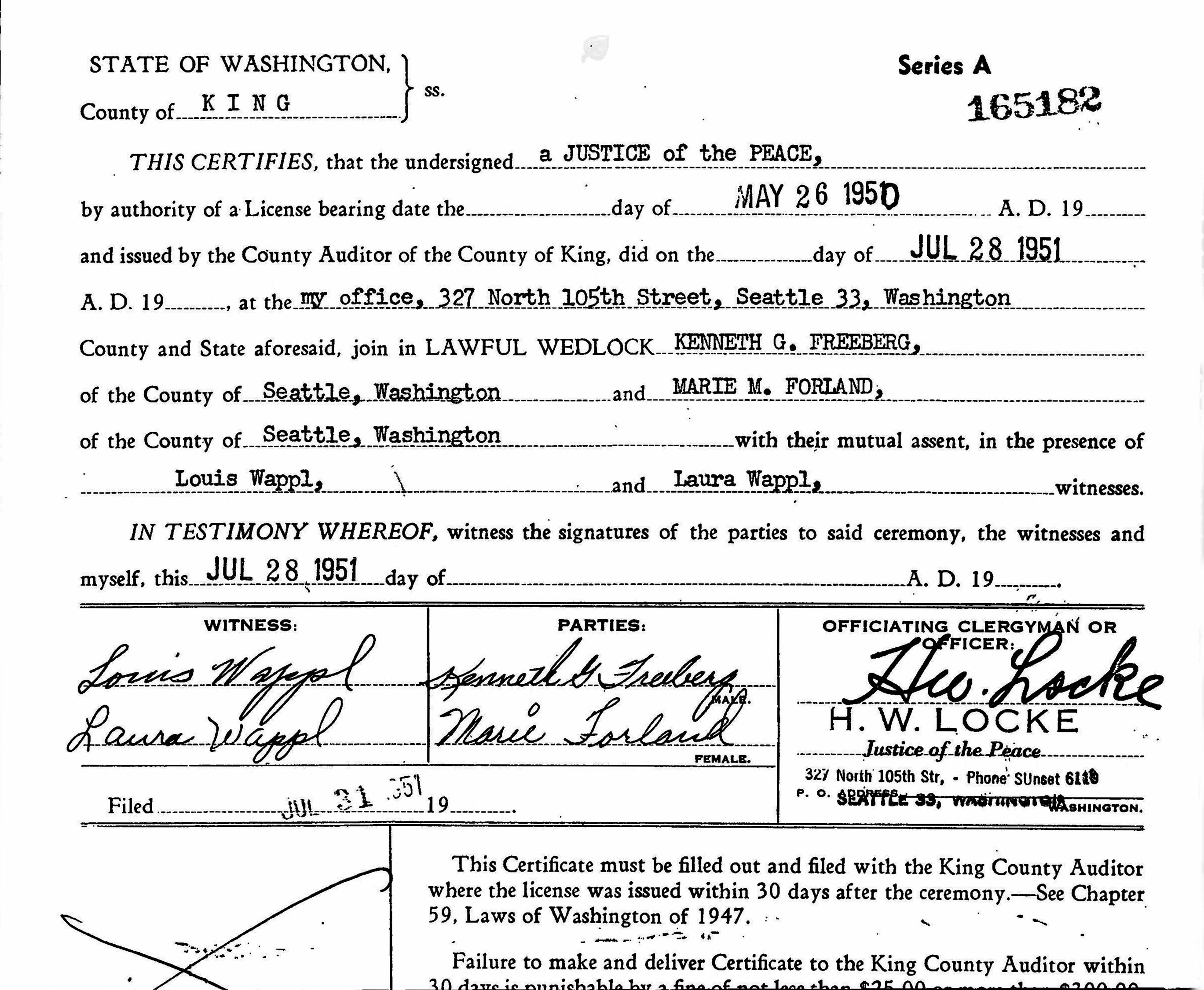 at the office of the Justice of the Peace, Seattle, King Co., WA