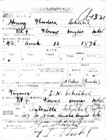 The WWI Draft Report dated September 12, 1918, shows Henry Theodore Scheibel (age 42) born March 12, 1876, is employed as a Farmer for L. W. Scheibel, and is living at Route 9, Florence, Douglas Co., NE. He is a citizen of Canada.
