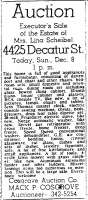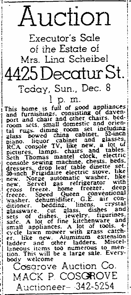 The 1940 U. S. Census taken on April 10, 1940, shows Henry T. Scheibel (age 64) born in Germany to Germany-born parents, and five years ago was living in the Same House, and with 8 Years of School, and a Naturalized citizen, is a married Finisher at Orchard Wilkenson, and who owns his house worth $3,500 and is living at 3719 Hamilton Street, City of Omaha, Douglas Co., NE. Living with him is his wife, Lina Scheibel (age 48) born in Germany to Germany-born parents, and five years ago was living in the Same House, and with 8 Years of School, and having emigrated in 1923, and a Naturalized citizen, a Housewife.