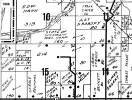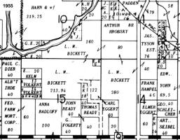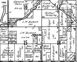 Shown above in chronological order are the lands LeRoy McVey "Roy" Bickett purchased late 1944 in the Town of Shields, Dodge Co., WI. The last of his land holdings were sold 1966 - 1971 by his widow, Gertrude Patricia Pearl "Gertie" (Baker) Bickett.