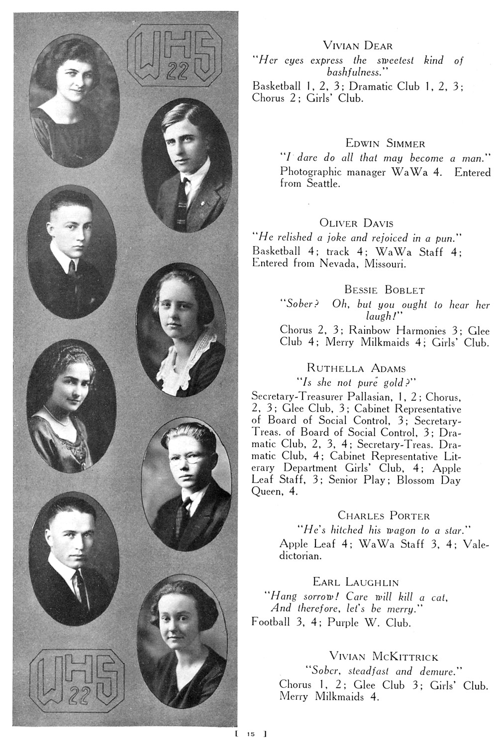 Vivian McKittrick graduated from Wenatchee High School, Wenatchee, Wenatchee Co., WA, in 1922.