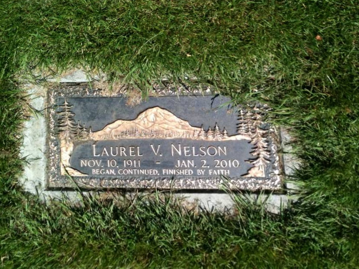 Laurel Victoria Nelson died January 3, 2010, in Astoria, Clatsop Co., OR, at age 98. Buried in Evergreen Memorial Gardens, Vancouver, Clark Co., WA.
