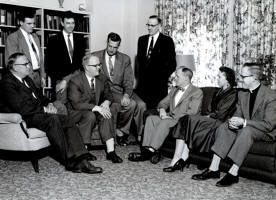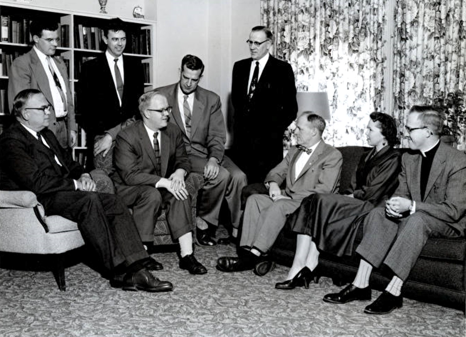 Shown in this image of the Lutheran Good Samaritan Society are standing (l to r): Seminarian Robert Hoeft (representing Rev. Harvey Seebach), Rev. William S. Dion, Rev. Harold Carlson and seated (l to r): Victor E. Johnson (treas.), Robert Larson (Pres.), Laurel V. Nelson, Dale Stanchfield (Sec.), Mrs. Richard England, and Rev. Robert Kugler (V-Pres.). From: Lutheran Church in America Image Collection, 1870s-1988. LCA Collection 30. Contributed by: C ollege and Lutheran Church Archives, Gustavus Adolphus College, 800 West College Avenue, St. Peter, MN 56082