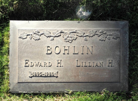 Emil Helge "Edward/Ed" Bohlin and Lillian S. "Lilly" (Holm) Bohlin are buried in Inglewood Park Cemetery, Inglewood, Los Angeles Co., CA. Thanks to Find-A-Grave for making this image available.