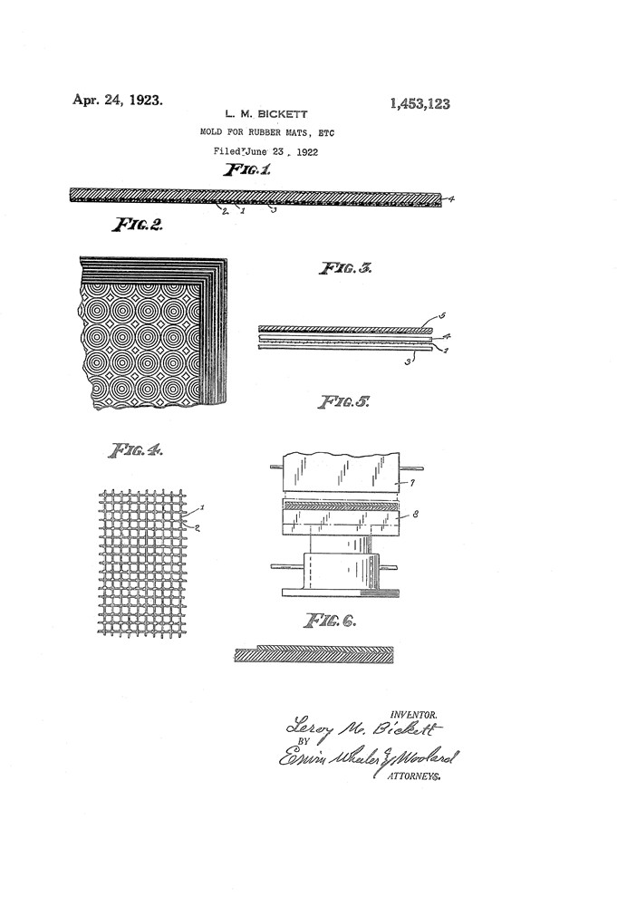 The following is a complete list of all the original incorporators of the Bickett Rubber Products Corp., and all, excepting three of the gentlemen listed, have passed on: L. M. Bickett, R. A. Cebell, Charles Feisst, R. J. Hoge, E. J. Hoermann, Dan Kusel, Louis H. Kusel, Max G. Kusel, A. F. Mayer, Fred Saxmann, Edward L. Schempf, W. S. Siebert, Herman Wertheimer, O. C. Wertheimer and G. Pritzlaff. Of this group Mr. Bickett, Mr. Hoge and Dan Kusel, are the men still living. Due to the fact that the equipment used by the Pan-American Rubber Co. was not suitable for the manufacture of mechanical rubber goods it was necessary to purchase approximately $100,000 worth of new equipment, and this was accordingly done and installed within 12 or 18 months after incorporation. In order to get into production as soon as possible, while developing the mechanical rubber goods business, the company secured contracts from a number of chain store organizations for stair treads and rubber heels, and within three years time the company achieved the honor of being the largest manufacturer of stair treads in the United States. As mechanical rubber goods orders were received the volume of business increased and profitable operations resulted.