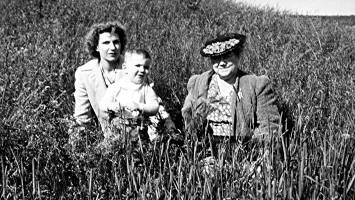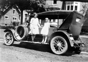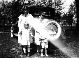Helen Means Bickett, Ruth Gertrude Bickett, and Gertrude Pearl Patricia (Baker) Bickett, possibly in April, 1930, when Mr. and Mrs. Leroy Bickett, of Watertown, Wisconsin, were in Yellow Springs, Greene Co., OH, to take Earl Bickett by automobile to St. Louis, where Earl will take the train for Galveston, Galveston Co., TX. Earl Bickett will make his home with his sister, Mrs. Chapman . It appears that the Bickett family automobile still has the 1921 Studebaker Model EJ Light Six Touring Car . Reed Allan Larson picture 18.