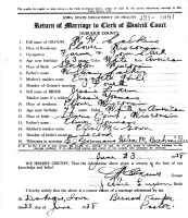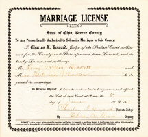LeRoy McVey "Roy" Bickett and Gertrude Pearl Patricia "Gertie" Baker marriage license, Xenia, Greene Co., OH.