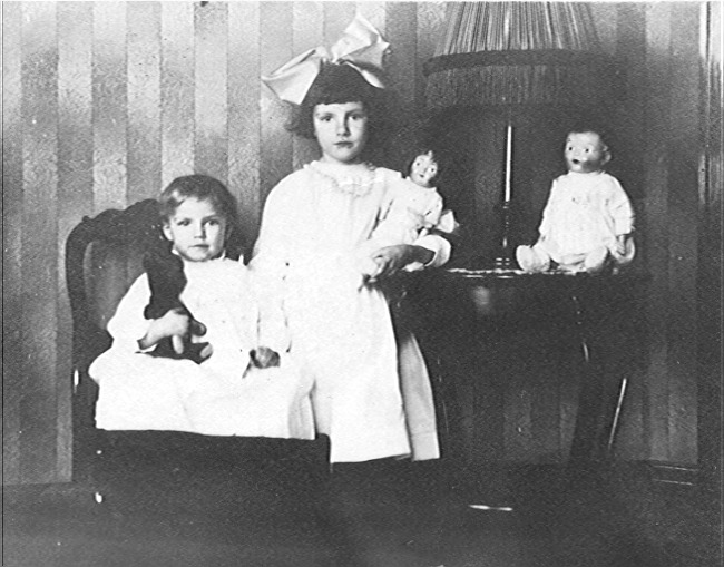 Helen Means Bickett and Ruth Gertrude Bickett, 1925, at the Bickett residence, 700 Clyman St., Watertown, Jefferson Co., WI. Reed Allan Larson picture 011.