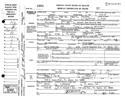 Lester Alfred Armstrong died October 2, 1975, in Parnell Park Nursing Home, Fort Wayne, Allen Co., IN, at age 75. Buried in an unmarked grave, Lindenwood Cemetery, Wayne Twp., Allen Co., IN.