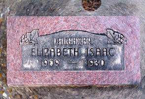 Elizabeth "Beth" (Wootton) Isaac died 1930 in Delta Co., CO, at age 21. Buried in Bethlehem Cemetery, Paonia, Delta Co., CO.