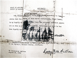Mrs. William Wootton certified on May 29, 1944, in Hot Springs, Garland Co., AR, that Floyd Isaac had been adopted by her, and her adoptive son's legal name is Floyd Wootton.