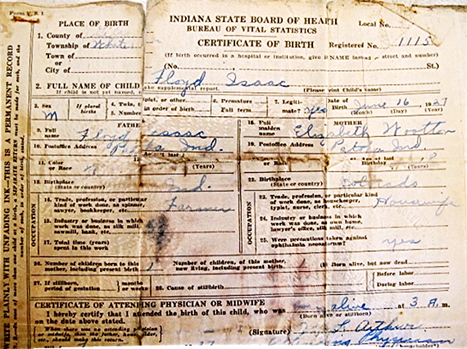 Floyd Isaac Jr. was born June 16, 1927, in Whiteriver Twp., Gibson Co., IN.