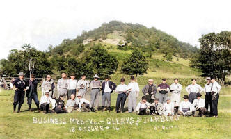 Baseball game, Business Men vs. Clerks and Barbers, Richland Center, Richland Co., WI, ca. 1908. Thanks to the Richland Center Digital History Room for making this image available.
