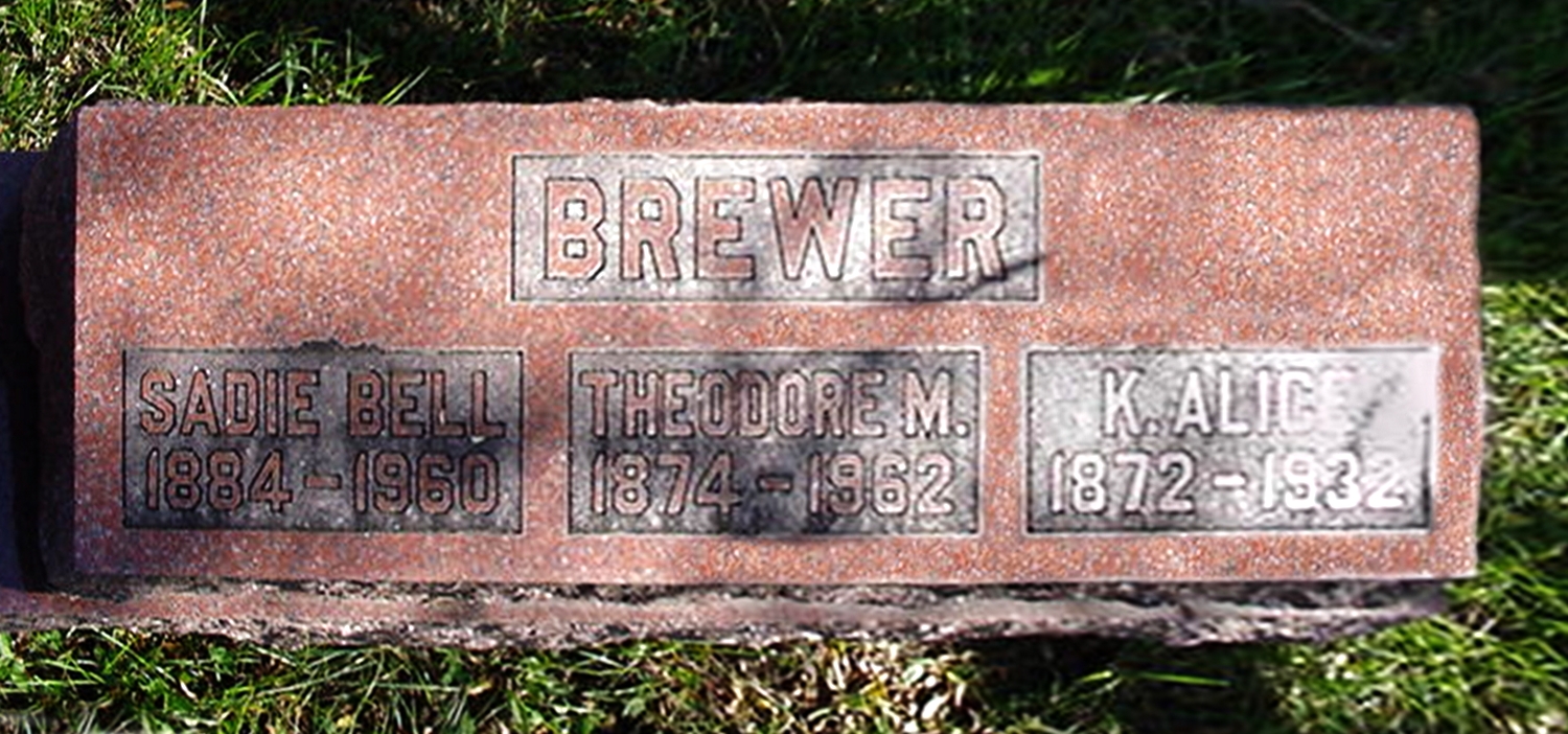 Theodore Merwin Brewer, Kathryn Alice "Kate" (Hyndman) Brewer and Sarah Belle "Sadie" (Phillips) (Knight) Brewer are buried in Richland Center Cemetery, Richland Center, Tow of Richland, Richland Co., WI . Thanks to Find-A-Grave for making this image available.