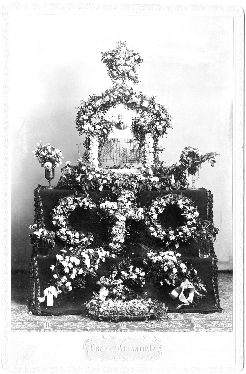 Terbush were married December 7, 1884, in Atlantic, Cass Co., IA.The 1885 Iowa State Census shows Charles Blake (age 60) born in Pennsylvania is a married Hotel Keeper and is living at Main and Vine Streets, Jefferson, Greene Co., IA. Also living there are: Sarah A. Blake (age 53) born in Pennsylvania, who does Housekeeping; Burdin Blake (age 19) born in Pennsylvania, an unmarried Harness Maker; Etta Blake (age 17) born in Pennsylvania, an unmarried Housekeeping Worker; James Blake (age 14) born in Greene Co., IA; and Charles Blake Jr. (age 11) born in Greene Co., IA.